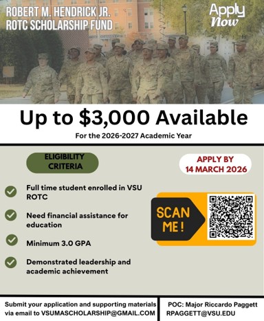 For over 77 years, the Virginia State University Military Alumni Chapter has stood as a beacon of excellence, leadership, and dedication. Founded by alumni who commissioned through the ROTC program, the chapter is a stronghold for military-connected graduates who continue to lead and inspire. Our members are mentors, leaders, and community builders who contribute to the success of the next generation